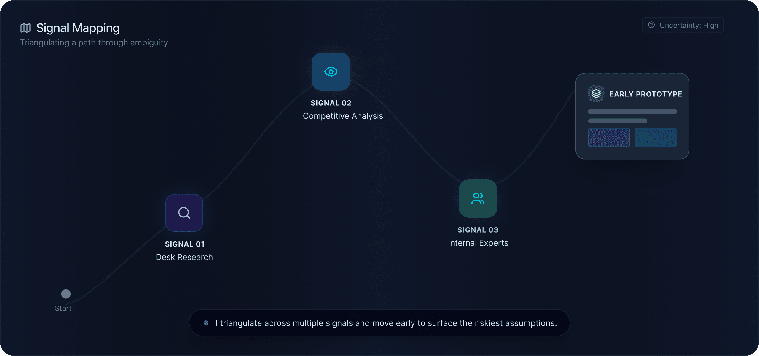 Triangulating a path through ambiguity by testing assumptions early